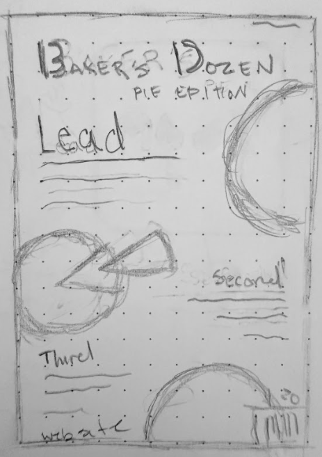 Initial thumbnail of final design. This iteration was selected out of four other thumbnails. I wanted to utilize the shapes of the pies to help guide a viewer's eye down a zig-zag line.