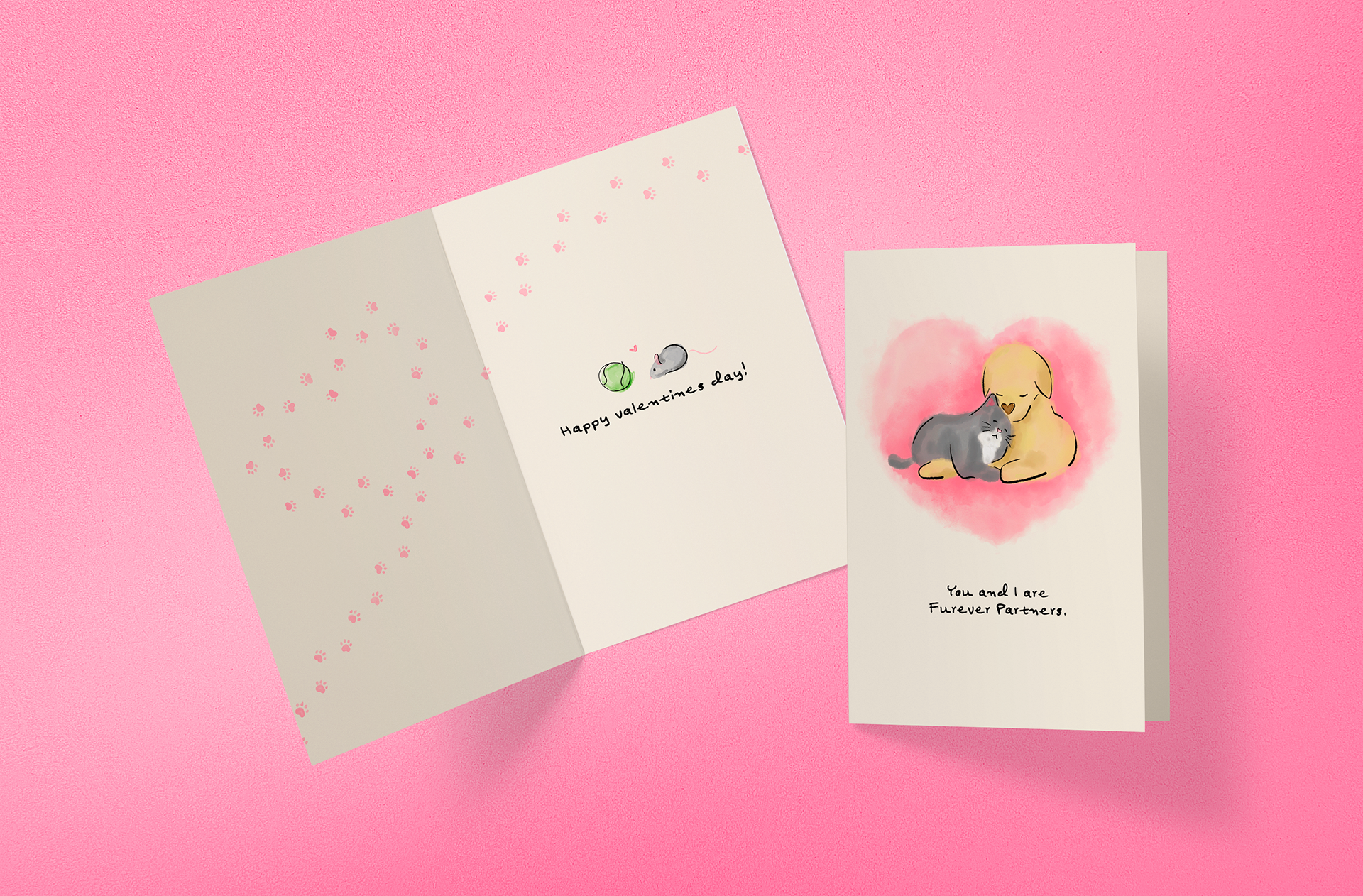Illustrate a Valentine's Day greeting card (front and interior) based on a theme of your choosing.